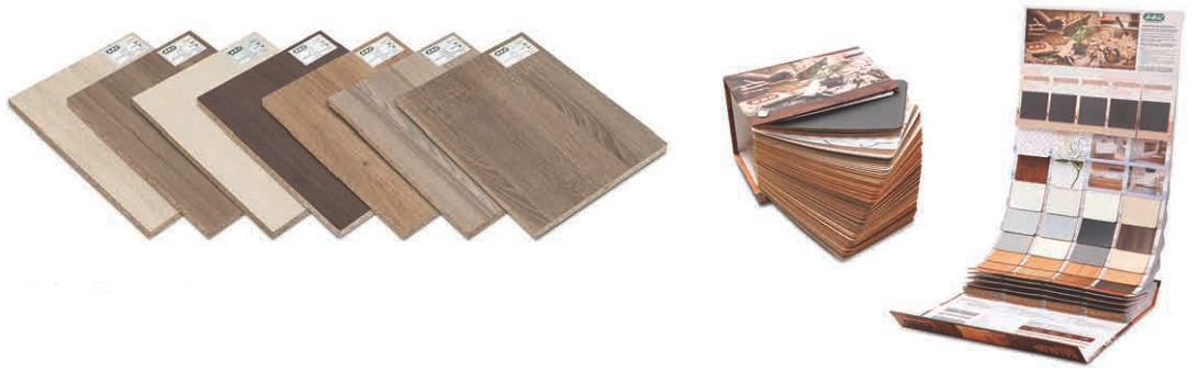 V základní nabídce laminovaných desek DDL je více než 80 dekorů. Tyto dekory je možno kombinovat s portfoliem nosných dřevotřískových nebo MDF desek Dřevozpracujícího družstva a strukturami povrchu.